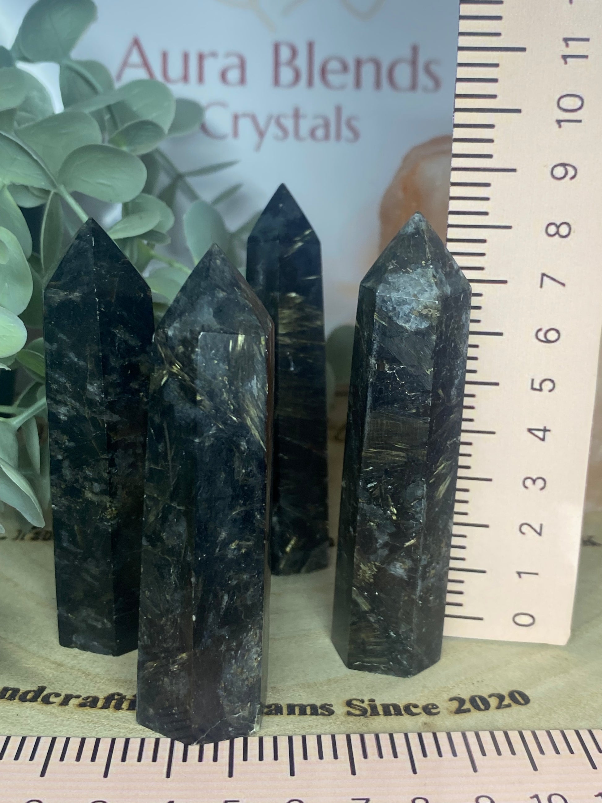 Experience the mesmerizing beauty of our Astrophilite Point, featuring stunning golden flashes. These unique and natural formations are perfect for enhancing meditation and promoting inner peace.