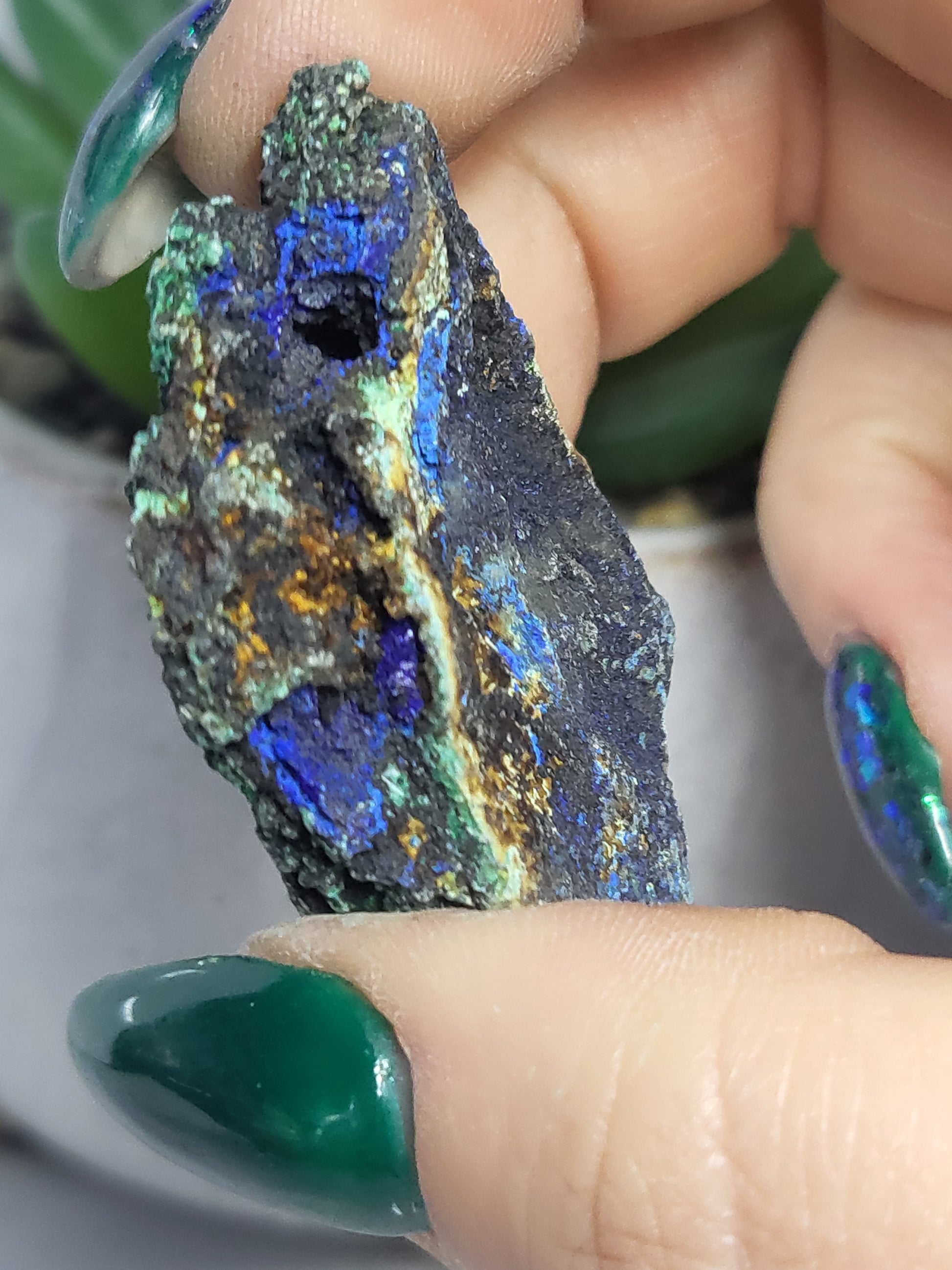 This stunning combination of azurite and malachite is a must-have for any mineral or gemstone enthusiast. The rich blue and vibrant green colors are a natural wonder, perfectly complementing each other in a stunning display. With this unique piece, you can add a touch of beauty and sophistication to any collection.