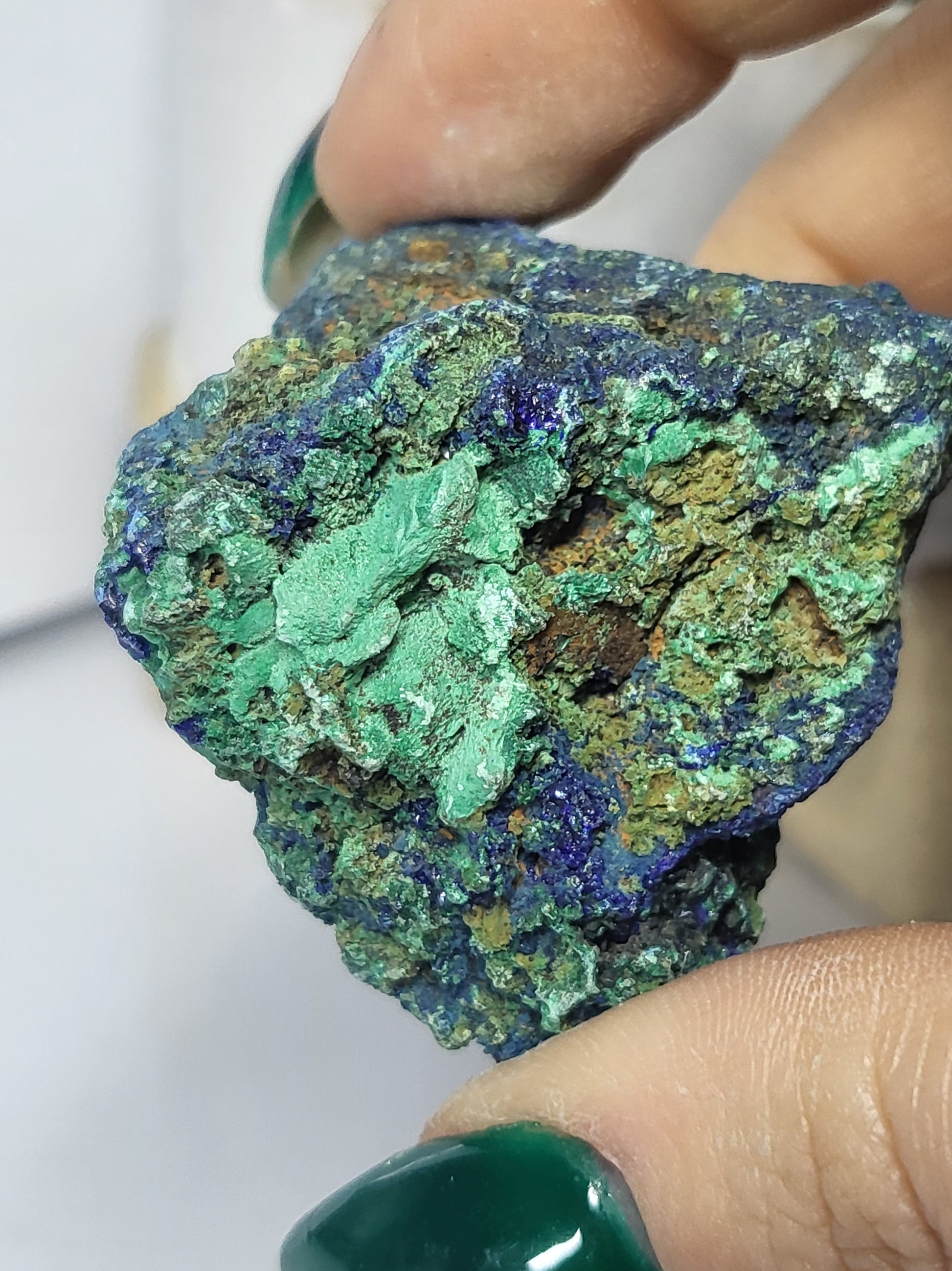This stunning combination of azurite and malachite is a must-have for any mineral or gemstone enthusiast. The rich blue and vibrant green colors are a natural wonder, perfectly complementing each other in a stunning display. With this unique piece, you can add a touch of beauty and sophistication to any collection.