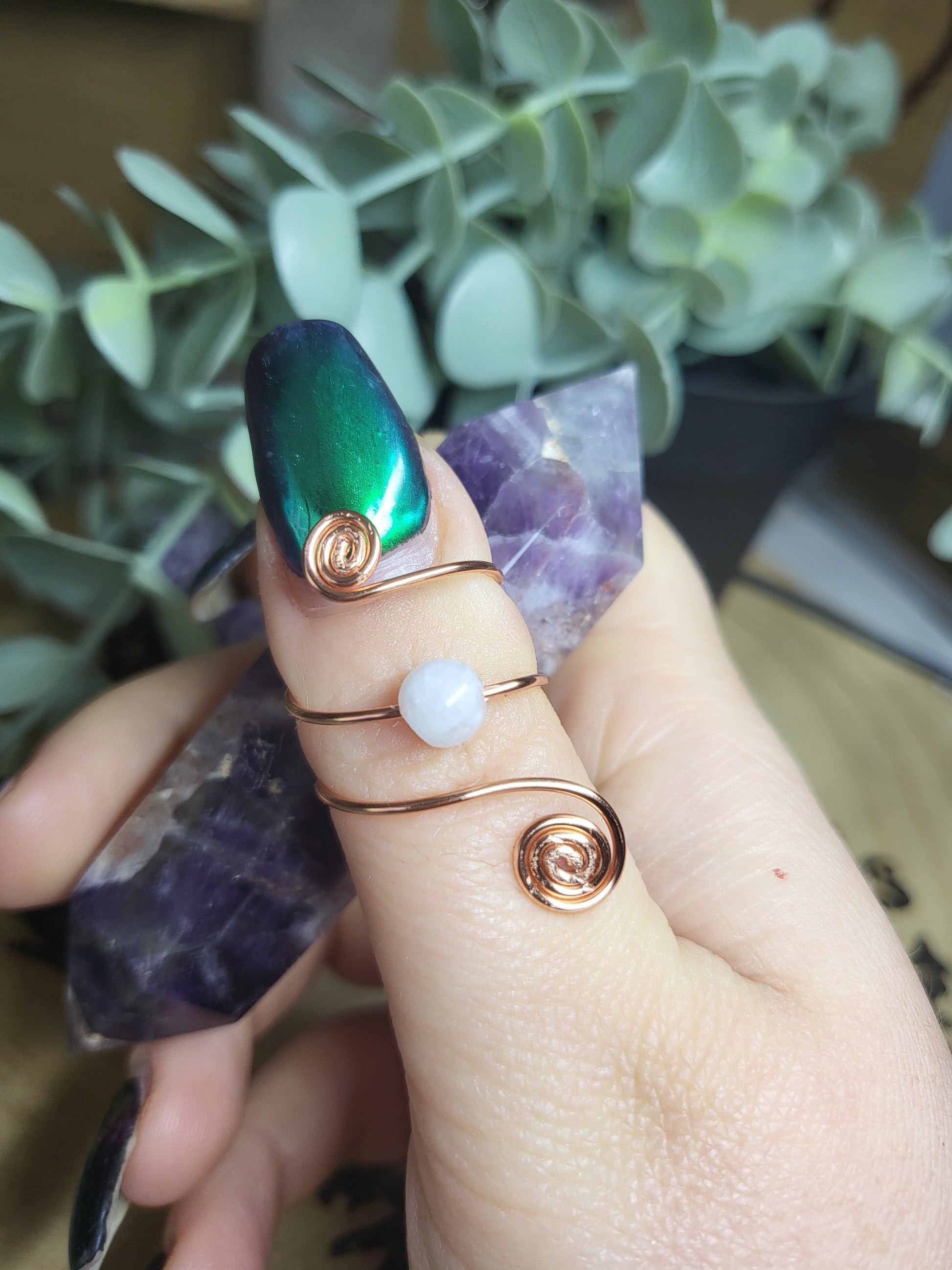 This beautiful copper moonstone ring is perfect for anyone who loves unique jewelry. The posable wire allows for a comfortable fit on any finger, while the moonstone bead adds an elegant touch. Simply mould the wire to your desired size for all-day wear. Sparkle and shine with this beautiful ring!