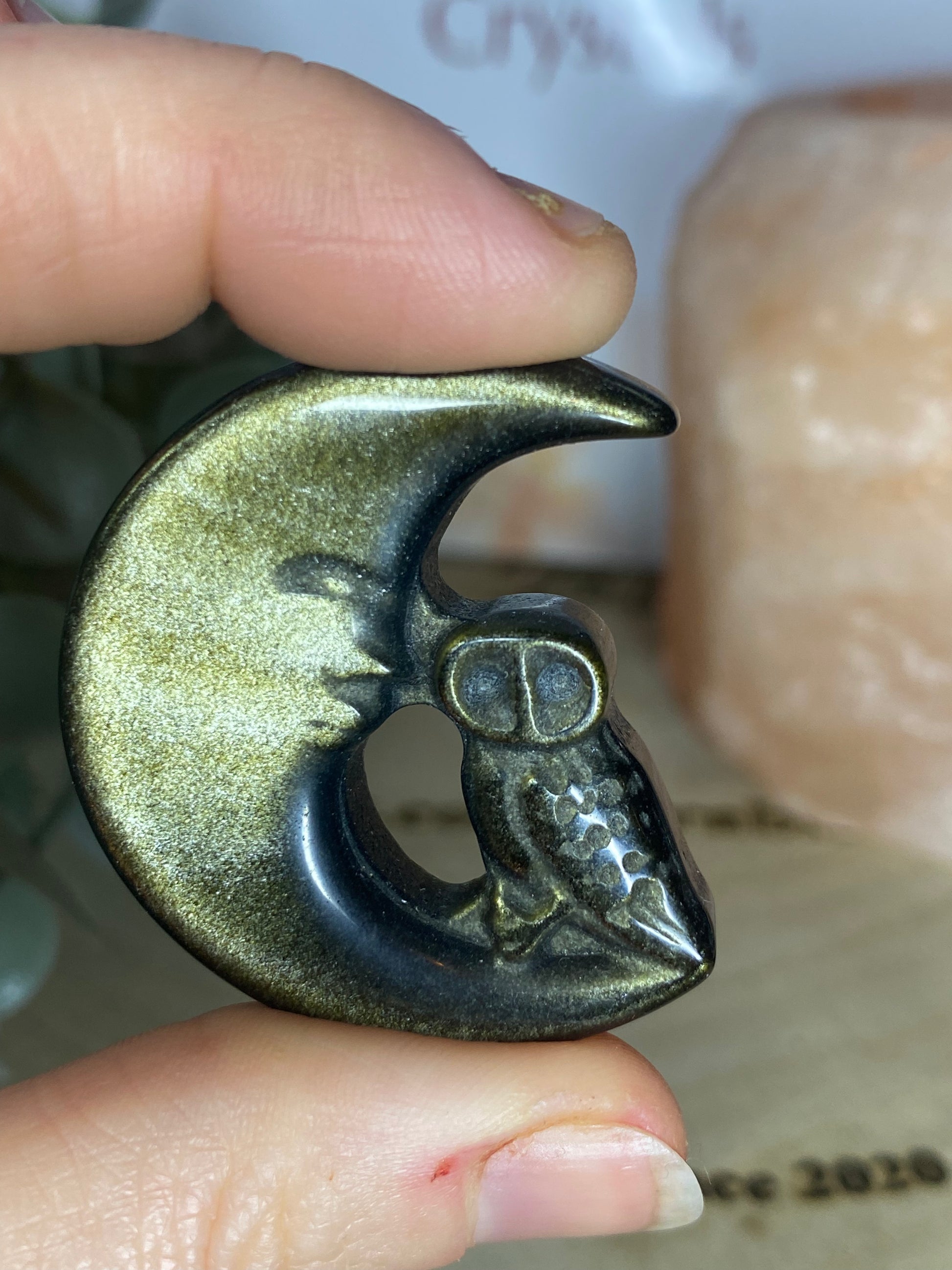 Gold Sheen Obsidian Owl and Moon