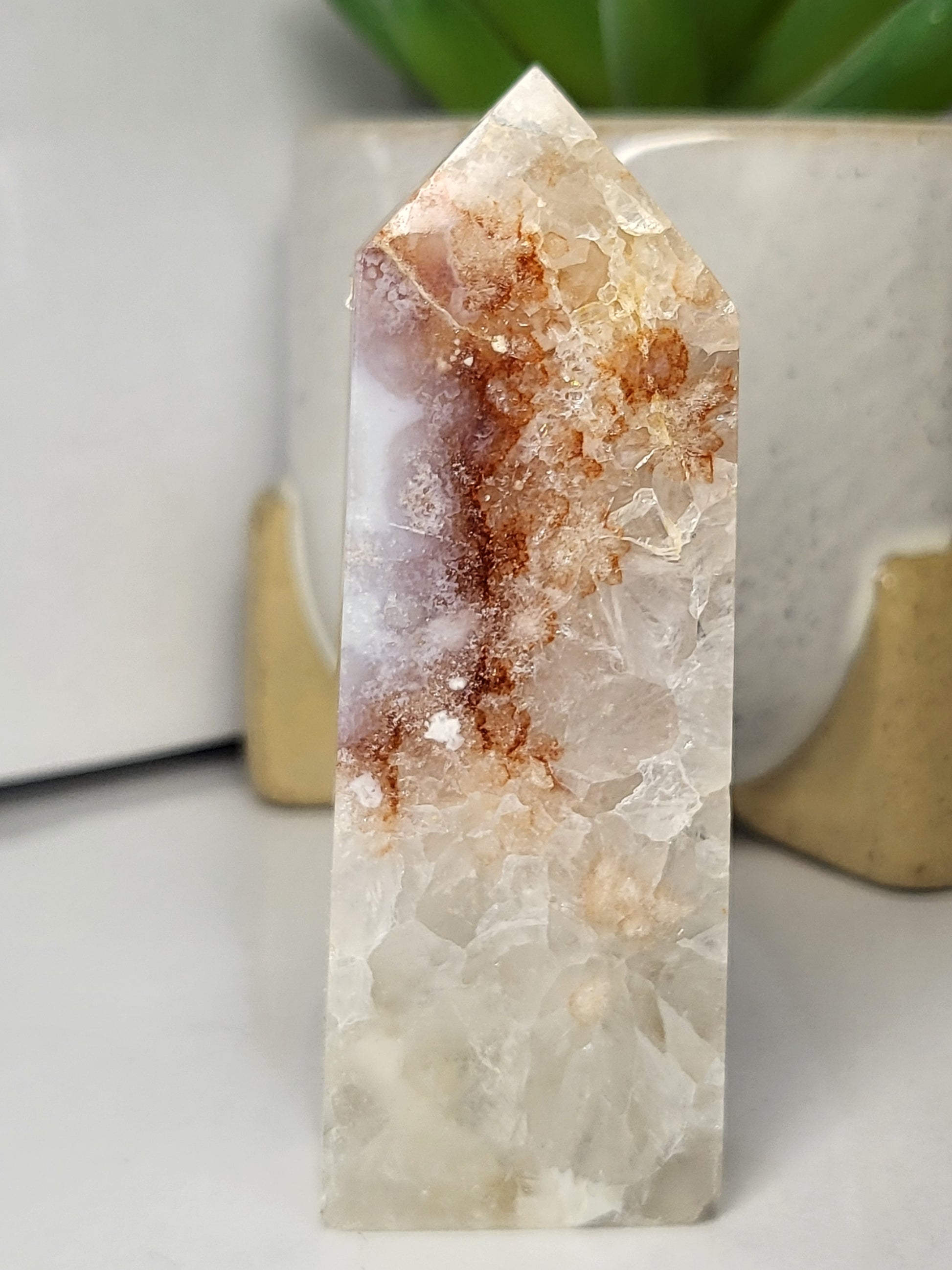 Experience the beautiful and calming energy of our Pink Amethyst point. This unique crystal feature boasts a striking pink hue and smooth, pointed shape. Perfect for meditation, its natural properties are known to promote peace and emotional balance. A must-have for any crystal collection.