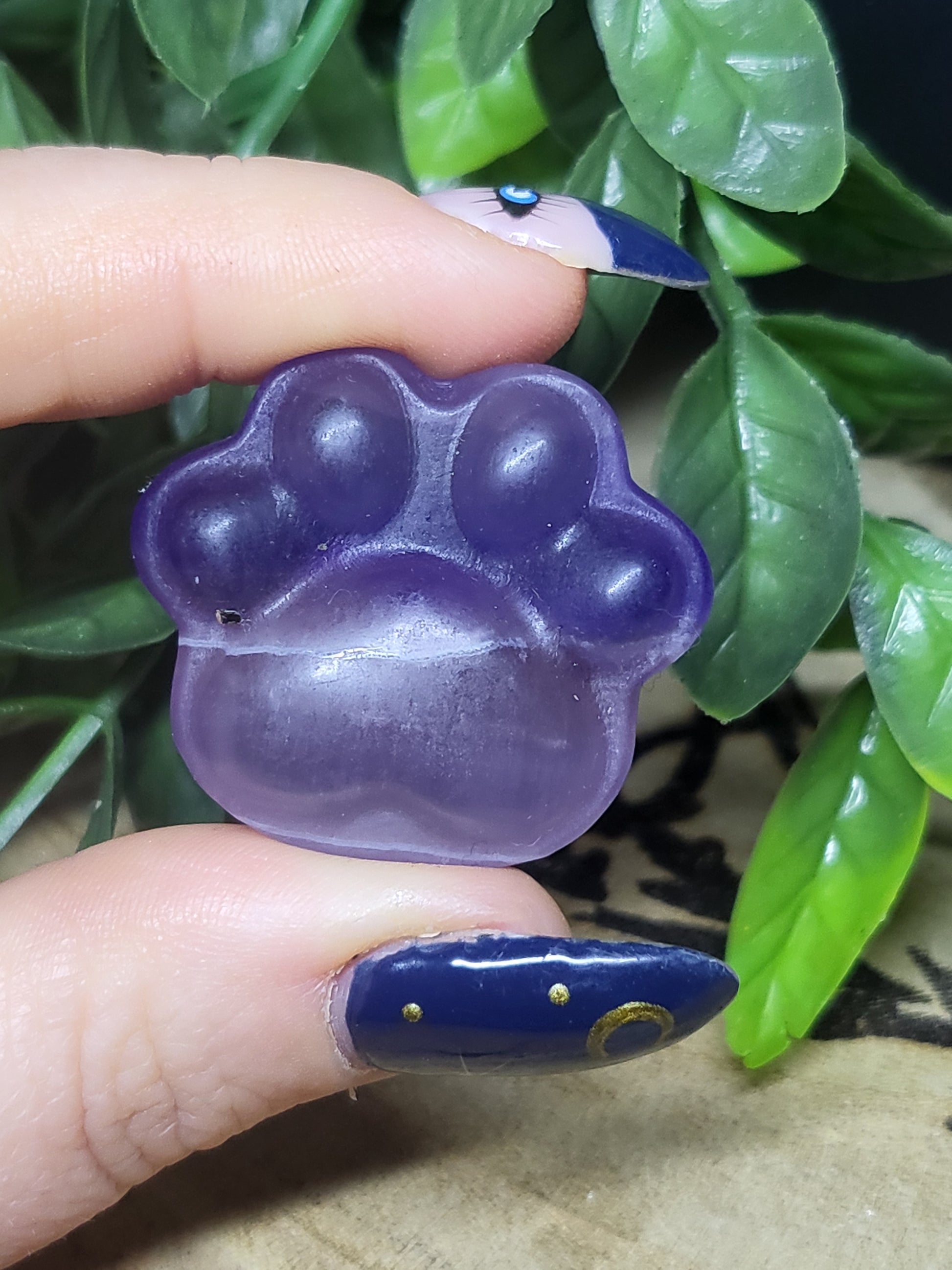 Keep the memory of your furry friend close with our purple fluorite Paw Print! This crystal carving is a cute reminder of your beloved pet. A unique and playful addition to any collection. Perfect for pet lovers!