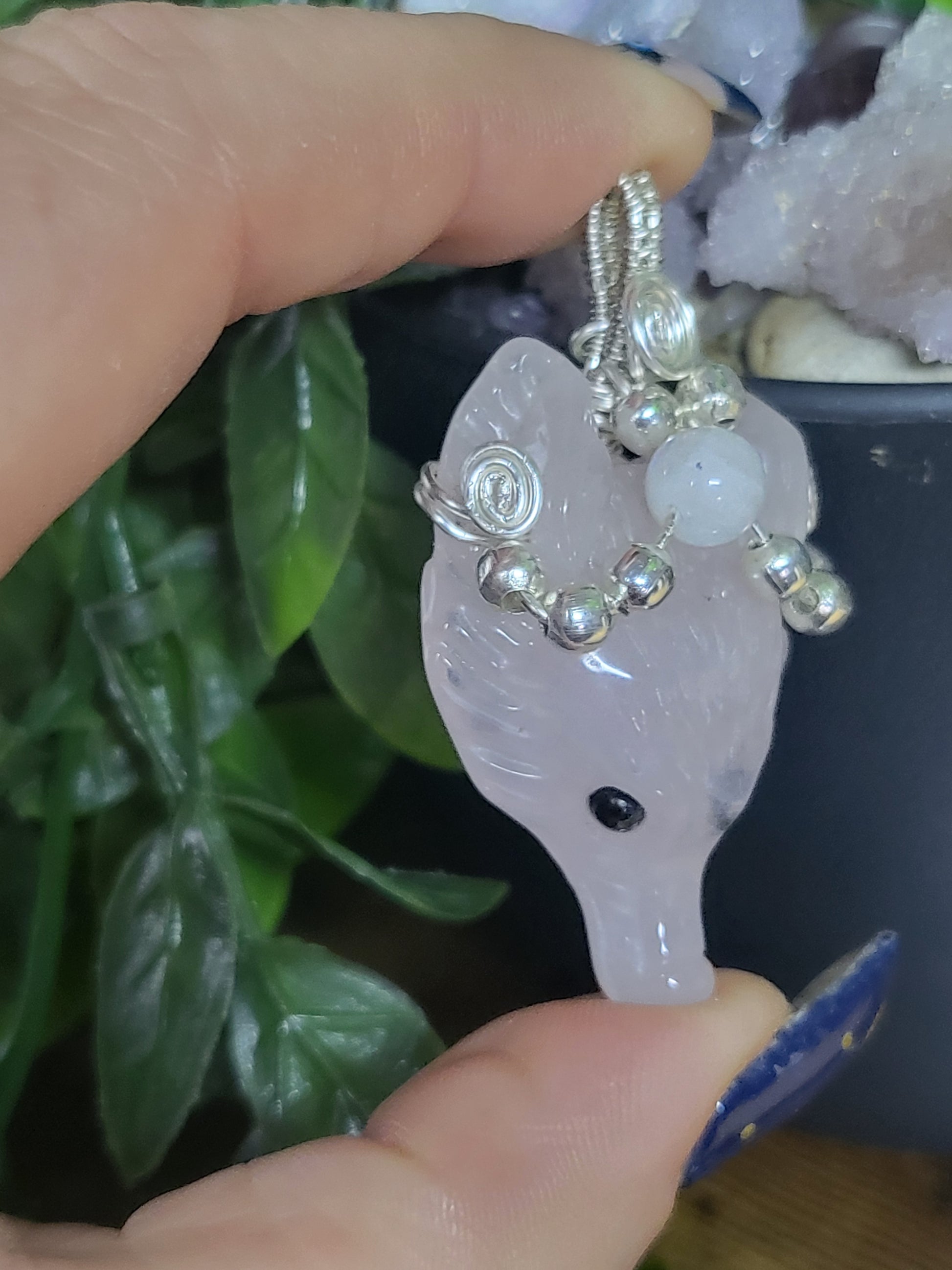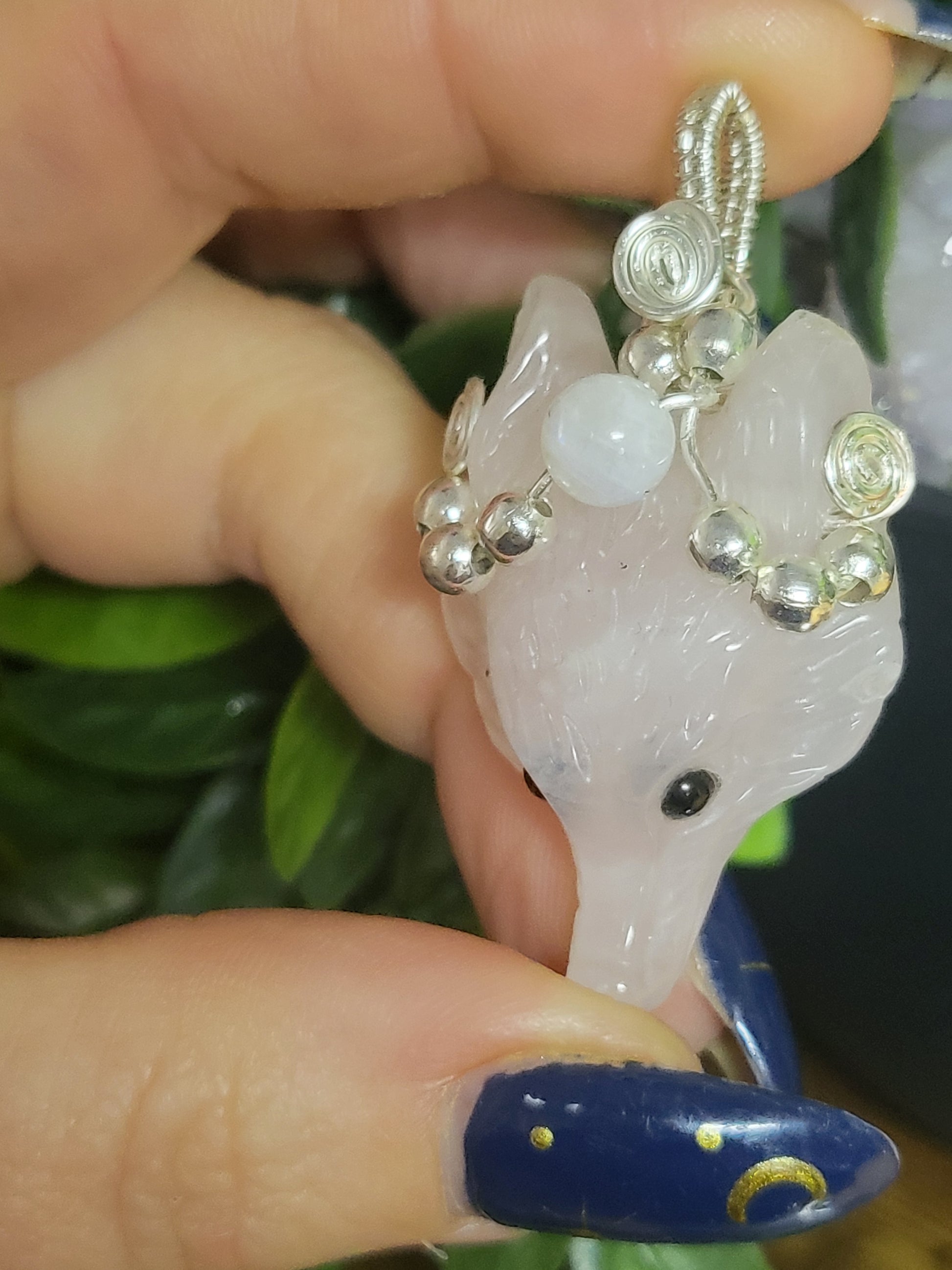Rose quartz wolf pendant with moonstone