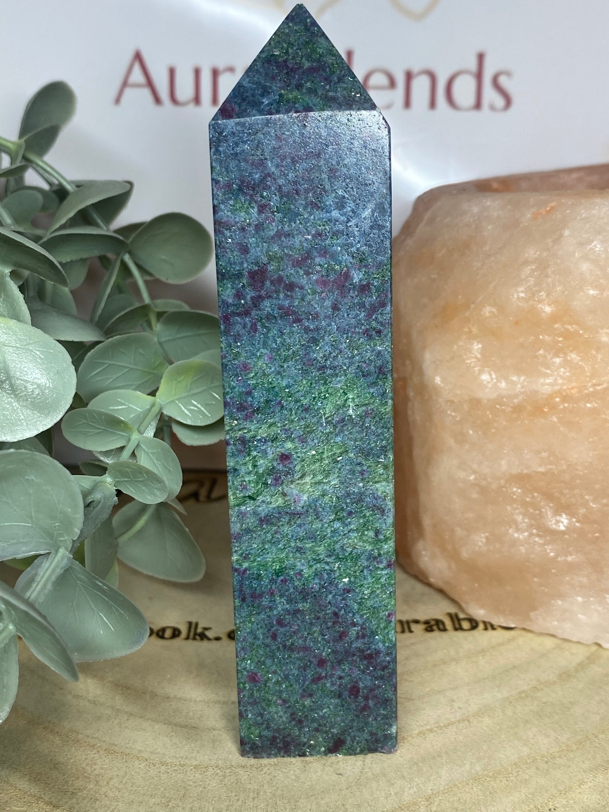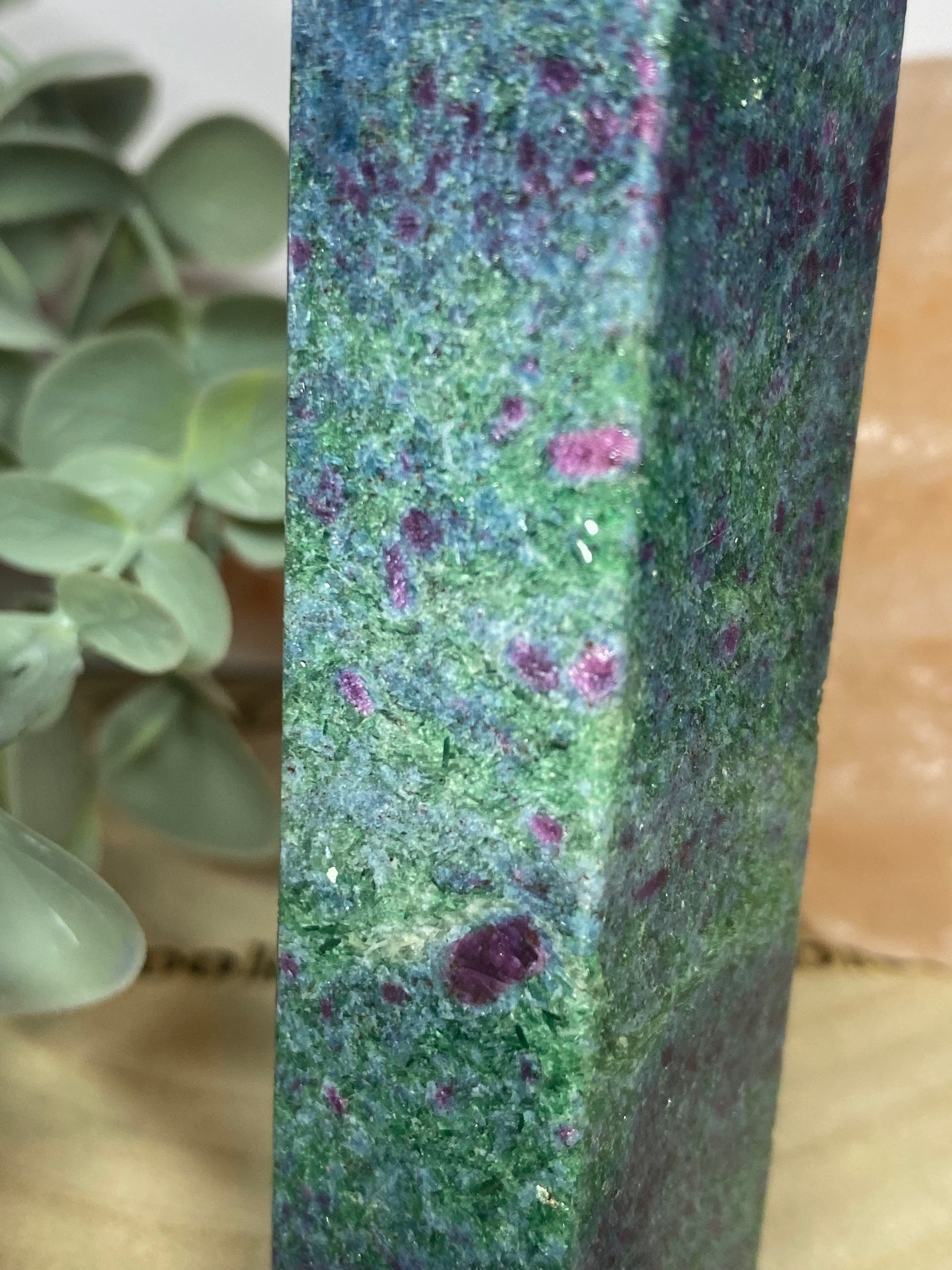 Expertly crafted for lovers of natural gems, the Ruby fuschite Tower combines the stunning hues and properties of Ruby, fuschite, and blue kyanite. Feel the power of these healing stones and enhance your energy, balance, and protection. Perfect for meditation, home decor, or as a thoughtful gift.